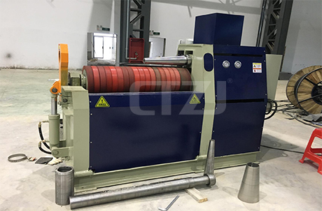 二辊卷板机为我公司生产的技术产品。其一辊为钢辊,另一辊为钢辊芯外包弹性层,板材置于两辊间并调整其间距,使其接触——加压——胶辊变形,板材随之局部变形,驱动两辊旋转,使板材连续弯卷成型。板料一次卷制即可...